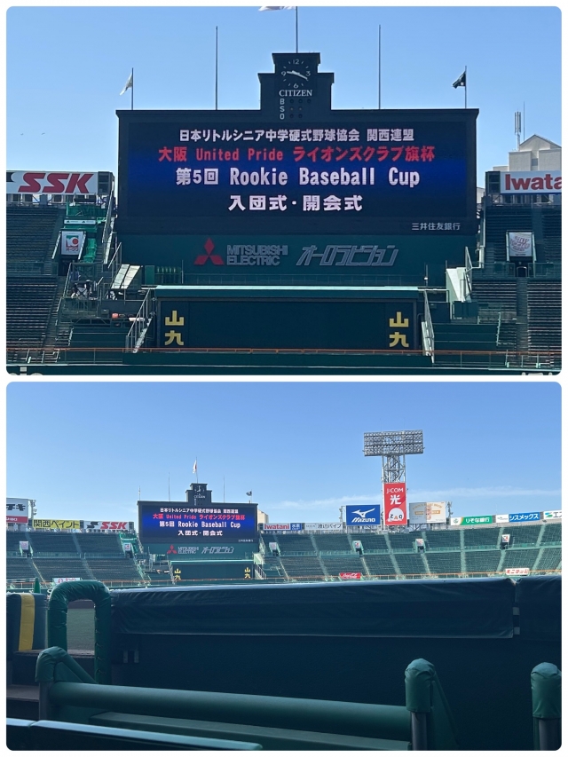 関西連盟合同入団式があこがれの阪神甲子園球場でおこなわれました。