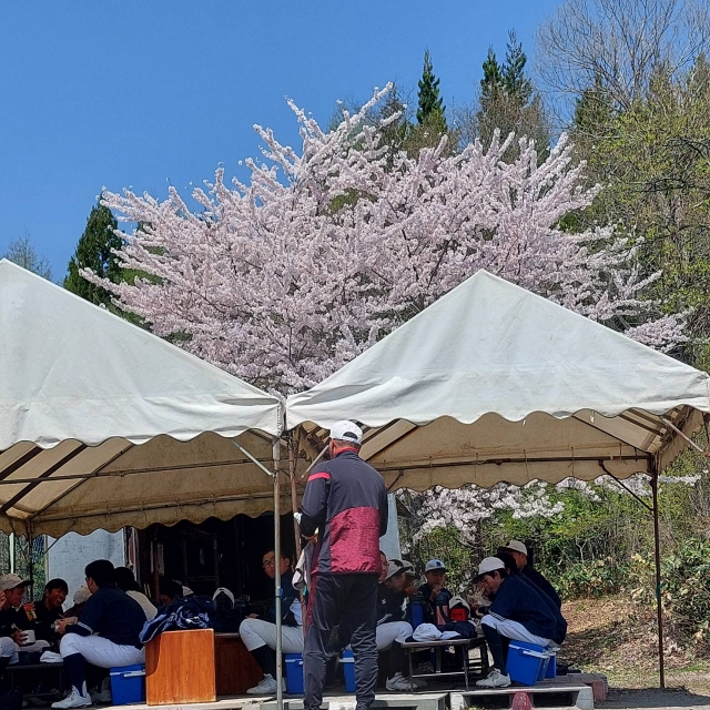 満開の桜と青空のもと、今日も練習頑張りました。...