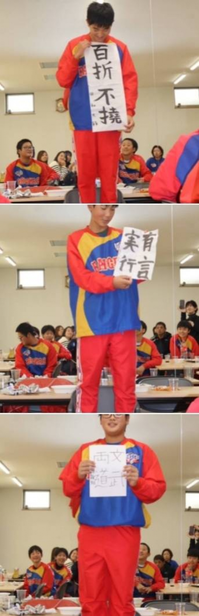 思い思いの文言をみんなの前で発表しま...