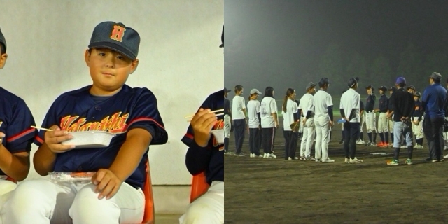 毎年恒例の親子ナイター!さあ!試合の前に腹ごしらえ。みんな、楽しそうにお弁当食べてた!グランドに照明がついた!さあ、親子で勝負や!子供チームの指揮をとるのは、キャプテンりゅうじん!...