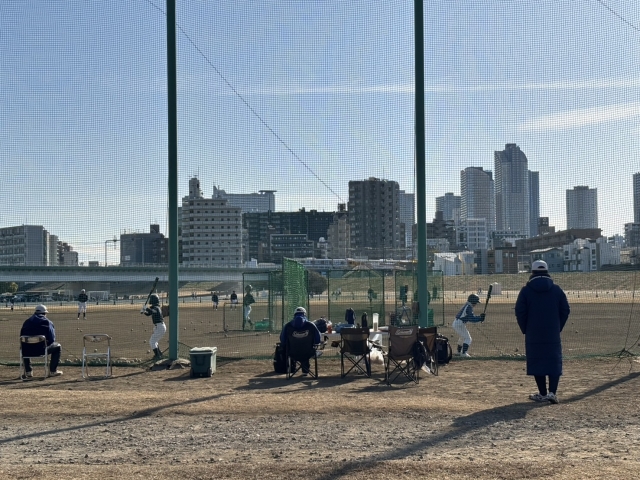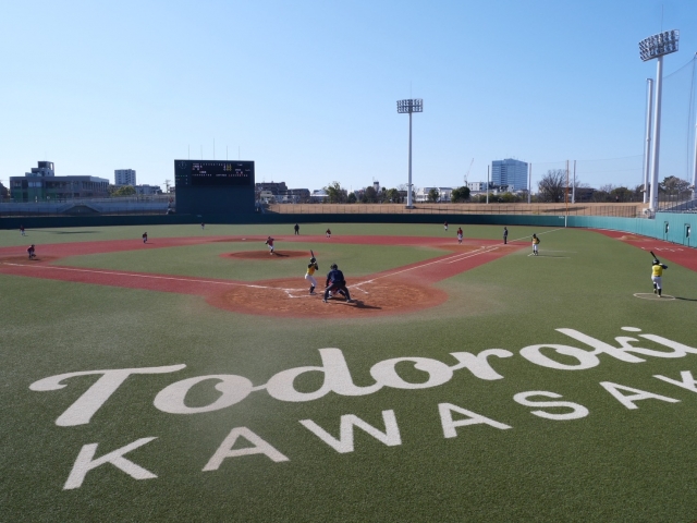 1/18(日)本日は川崎市野球の聖地・等々力球場を、川西が終日利用させて頂ける貴重な一日。
