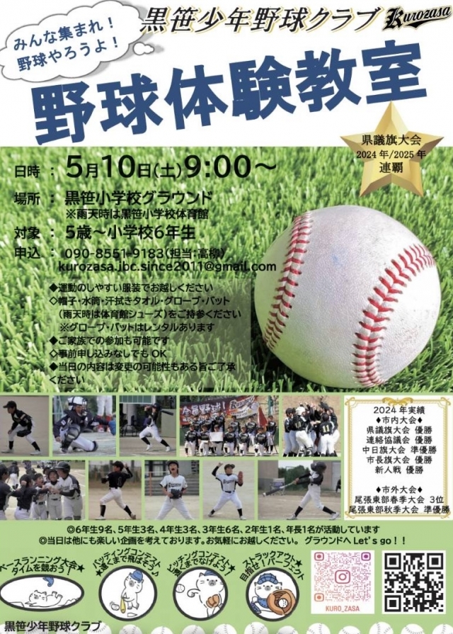 黒笹少年野球クラブ野球体験教室を開催します。 野球に興味を持ってる子供たち子供に野球やらせてみたいなぁなんか面白そうだなぁいまのところ、5/10am予定ないなぁ と思わ...