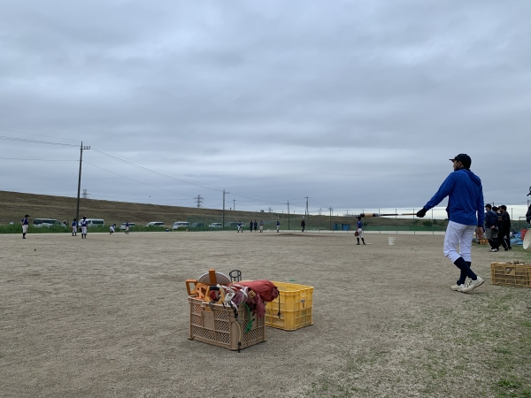 今日は雨がパラつく1日でした☂️ バッティングが出来るスペースはなかったため、守備中心の練習でした😁 午前のみの練習だったカルガモ3年生が午後から一緒に練習参加😊 ランナーなどのお手伝いと投げ打ちのサービス🥰