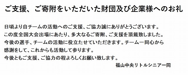 福山中央リトルシニアは、リトルシニア関西連盟中国支部に所属する中学生硬式野球チームです。