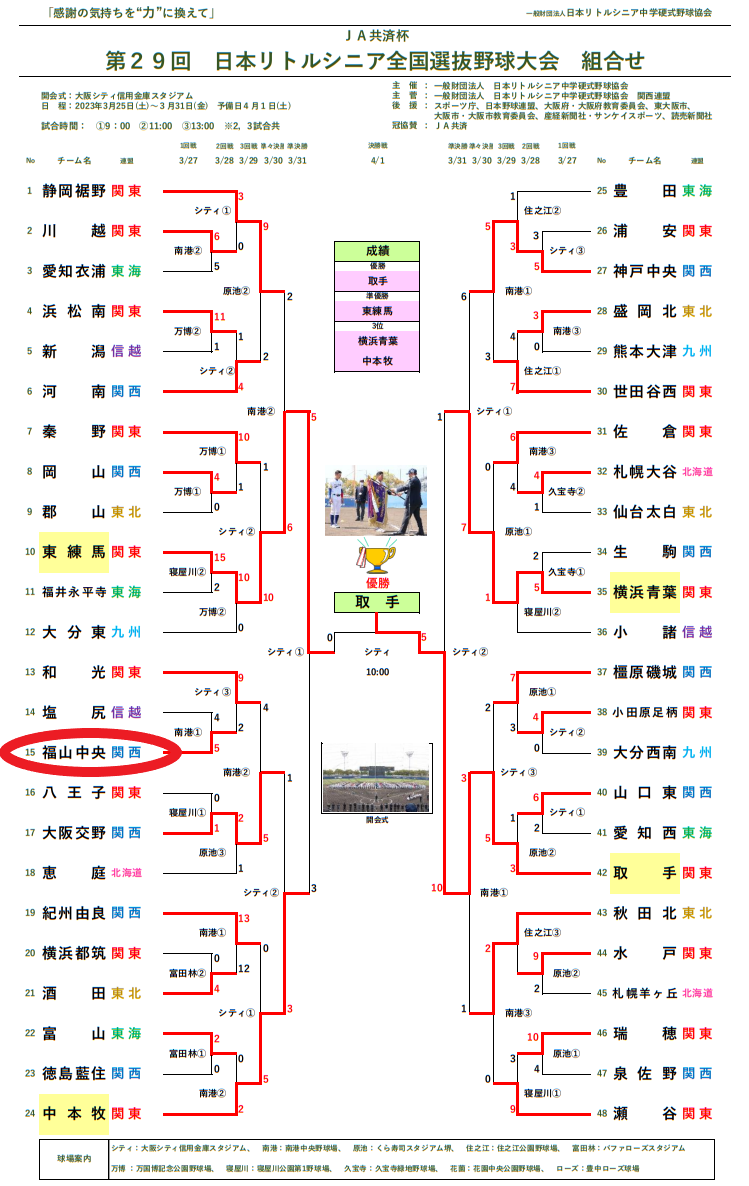 2023年度 日本リトルシニア 第52回関西連盟春季中国大会