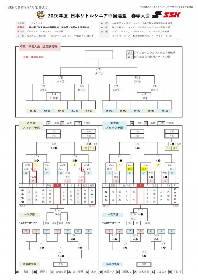 2023年度 日本リトルシニア関西連盟中国支部春季大会(予選リーグ)