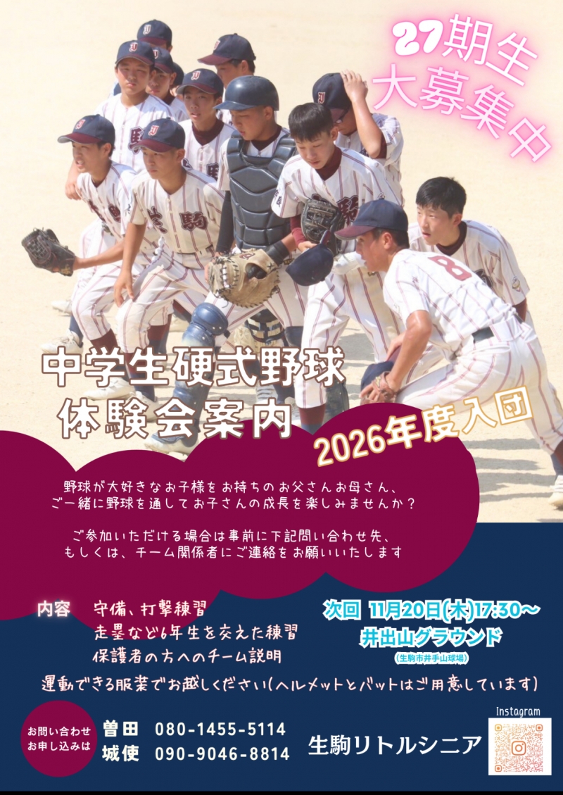 生駒シニア事務局 山村 TEL:090-5125-0115