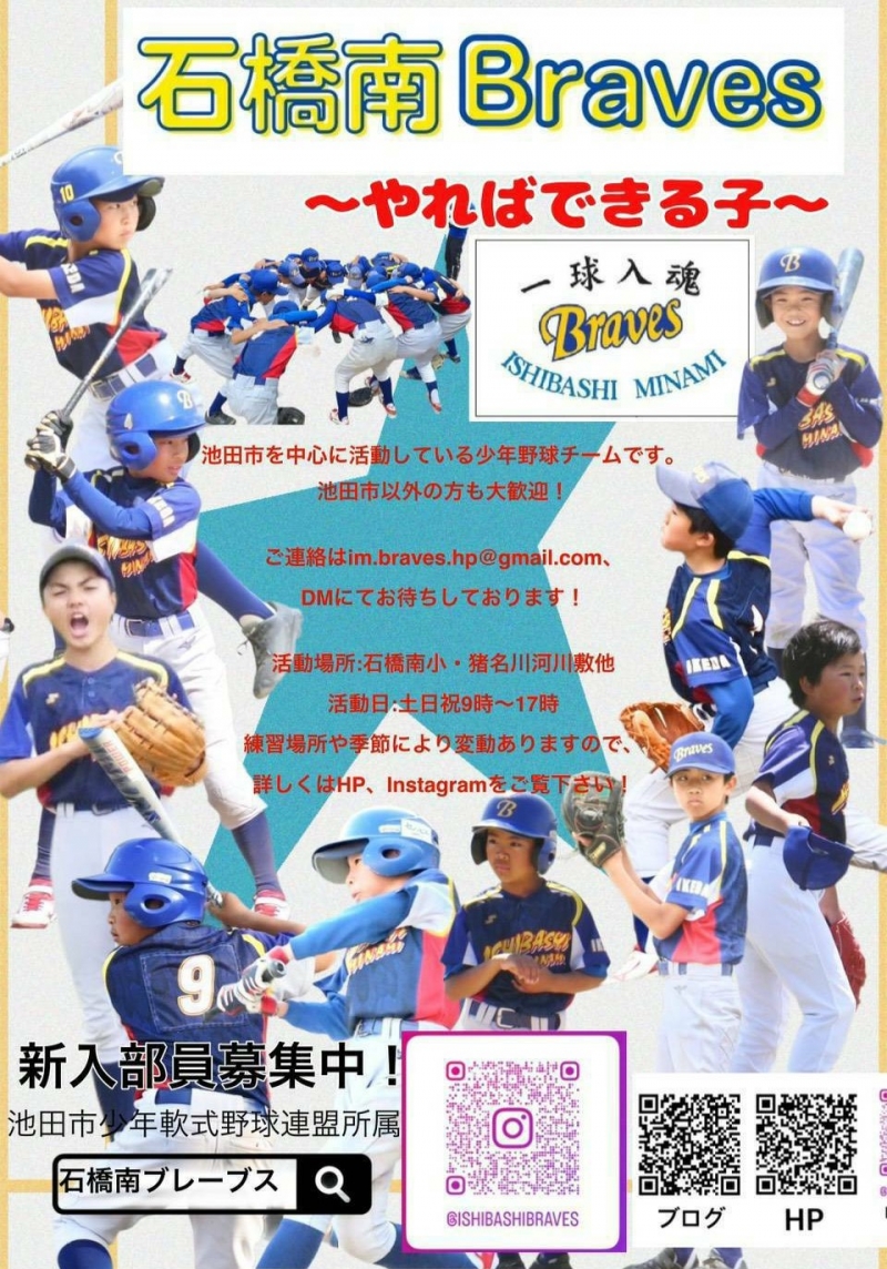 大阪府池田市を中心とした少年野球チーム"石橋南ブレーブス"です