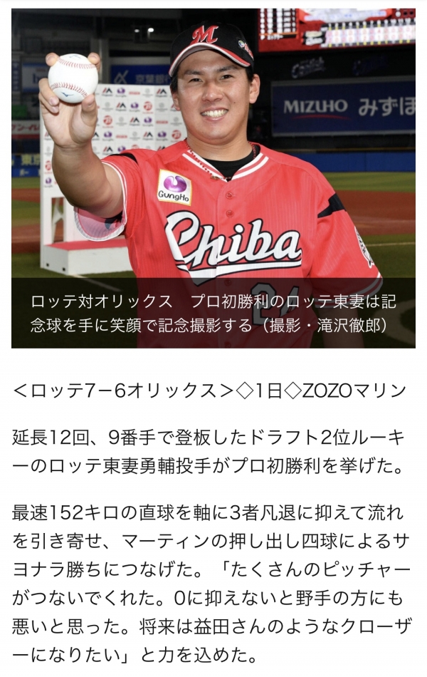 千葉ロッテマリーンズの東妻勇輔選手(紀州ボーイズ28期生)がプロ初勝利を挙げました。おめでとうございます。