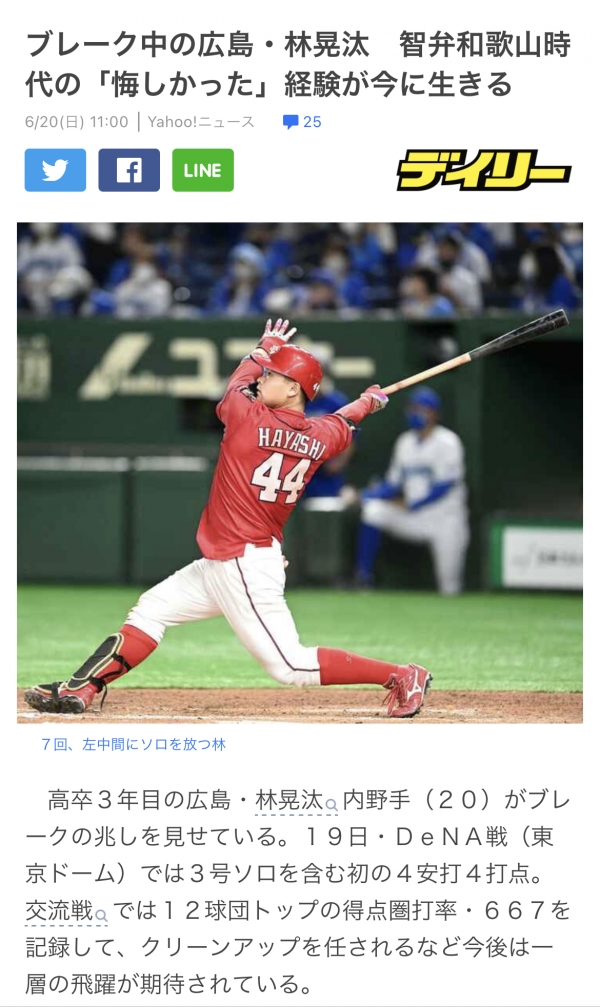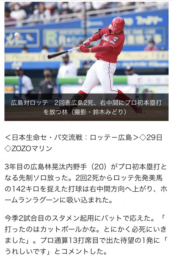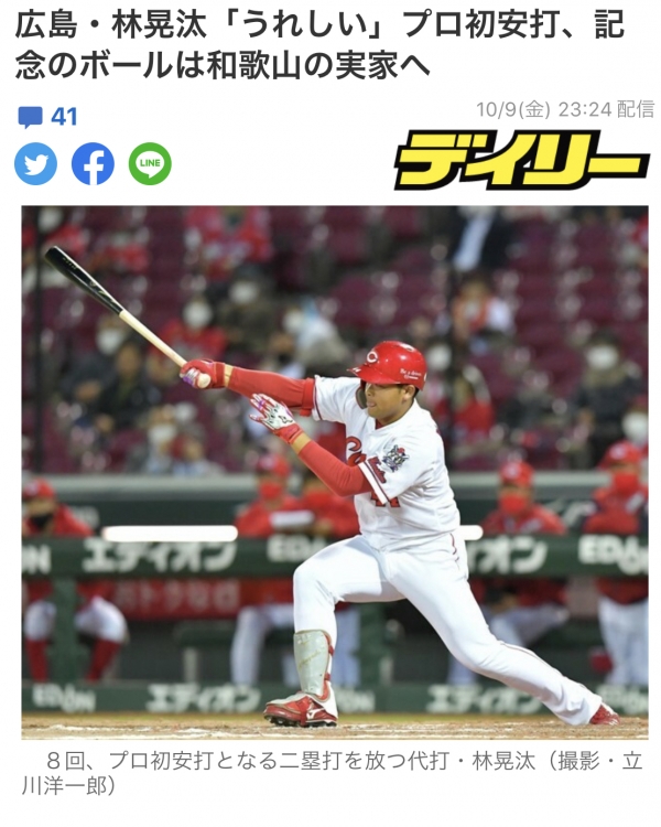 32期生林晃汰選手が10月9日のヤクルト戦でプロ初安打を放ちました。おめでとうございます。次はプロ初ホームランを期待しております。