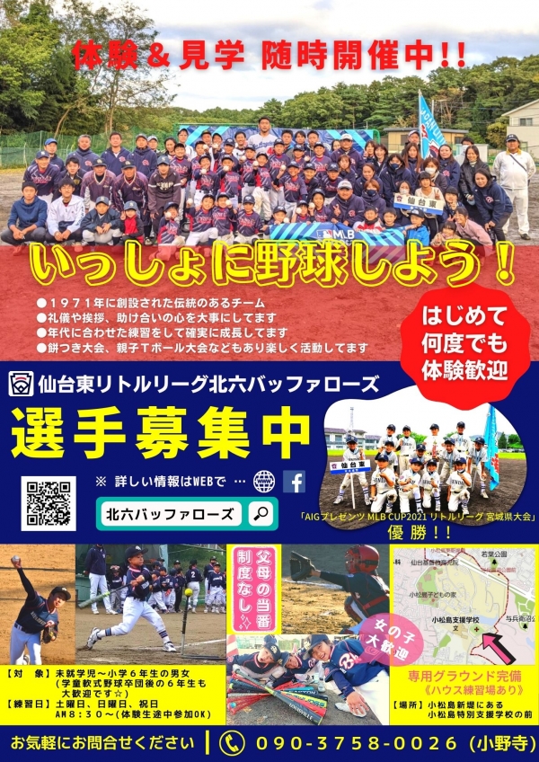 宮城リーグ仙台東 北六バッファローズ -全日本リトル野球協会東北連盟宮城県協会硬式少年野球-