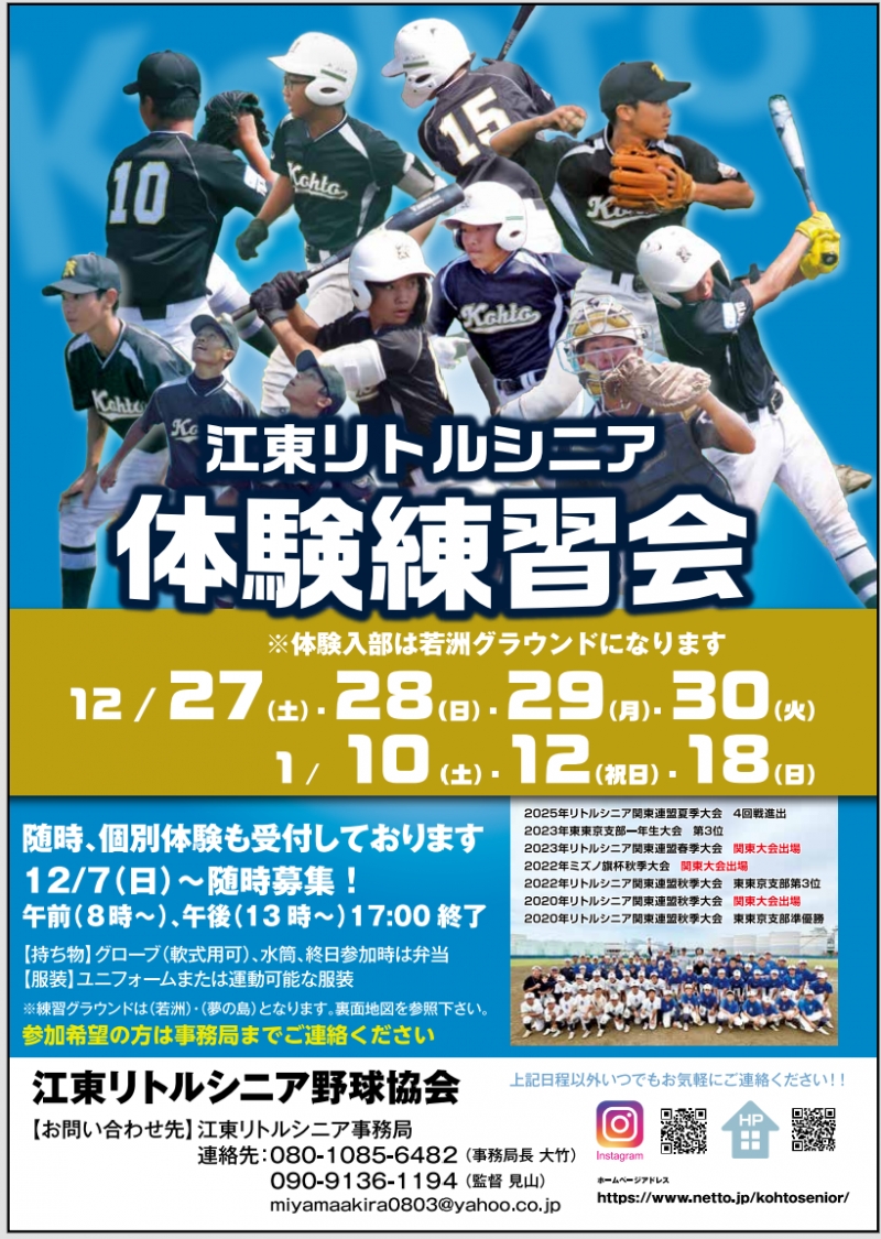 江東シニアでは、体験練習を受付中です。