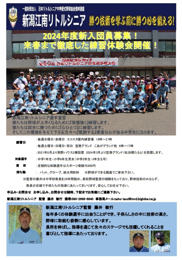 選手宣誓とは、江南リトルシニアの選手たちが練習前にグランドに向かって整列し、全員で唱和する言葉のことです。