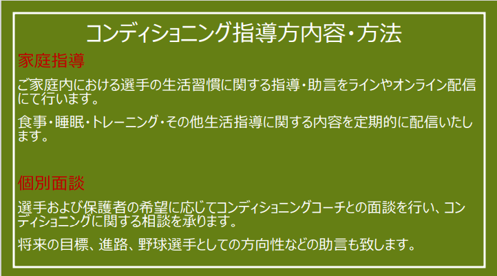 > コンディショニング指導方針
