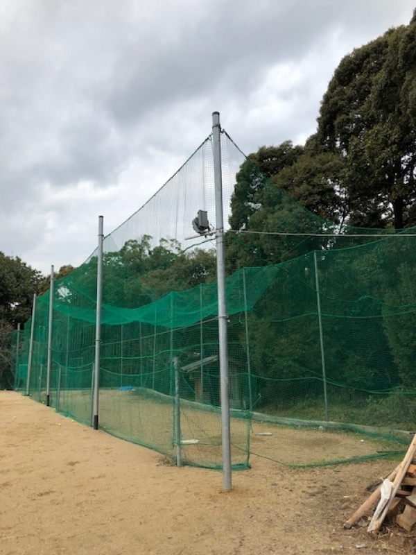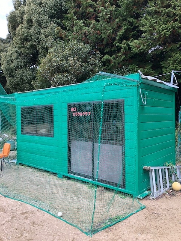 ブルペンは手作りのネットで囲み,打撃練習も可能としてます。