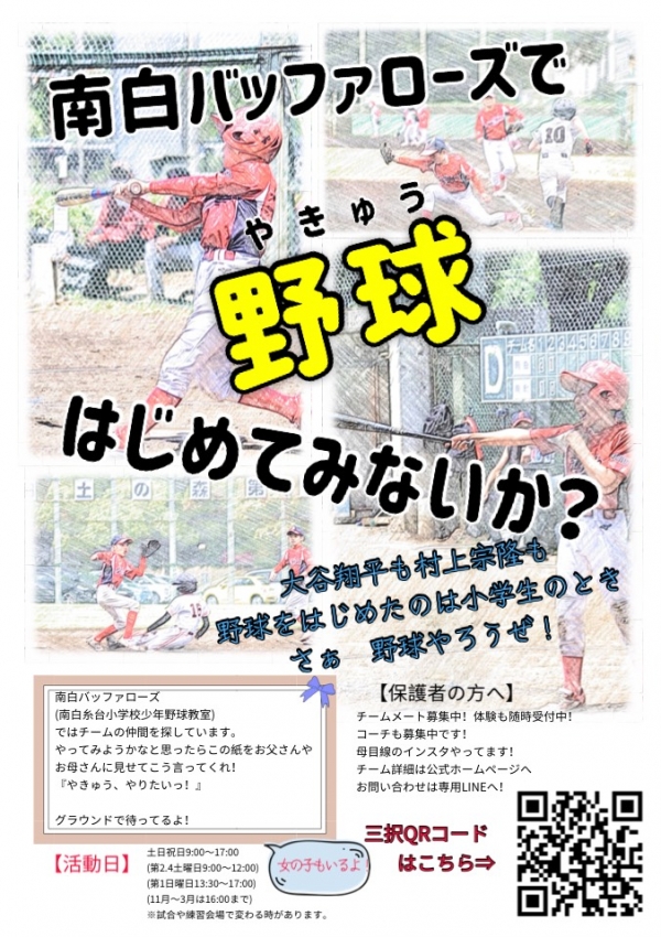 お気軽に南白糸台小学校校庭に来て野球に触れてみてください。