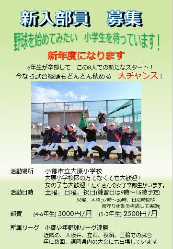 【 所 属 】小郡少年野球リーグ連盟