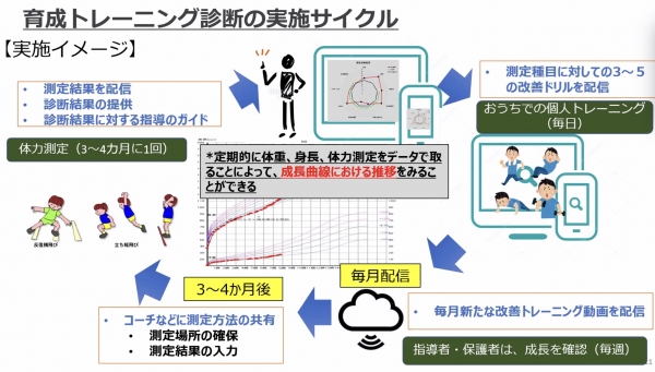 成長過程にあった基礎体力・運動能力を向上させるための取組みとして「育成トレーニング診断」システムを導入しています。