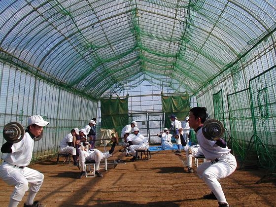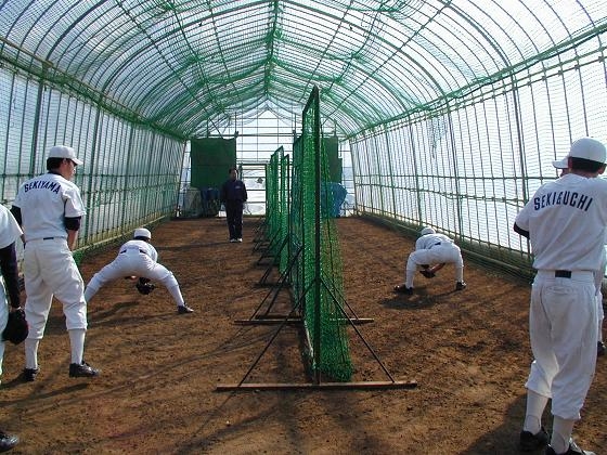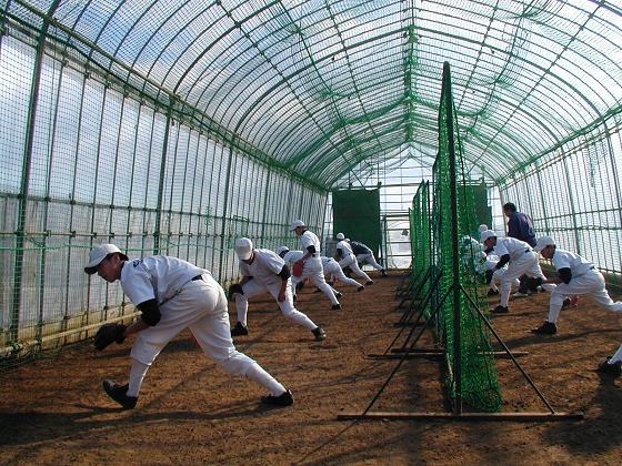 仙台東部リトルシニアは専用のハウス内で基本からのトレーニングに取り組んでいます。