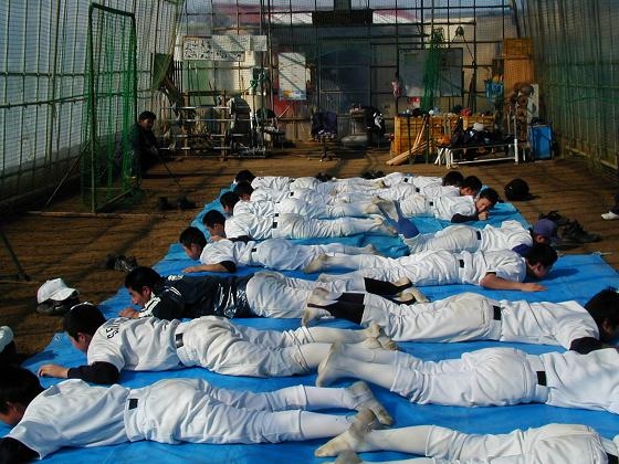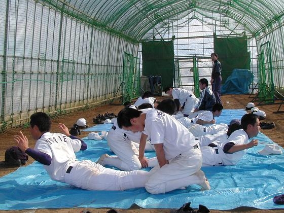 H18.2.12は試験前で休みの選手も多く、ハウス内は少な目の人数ですが、