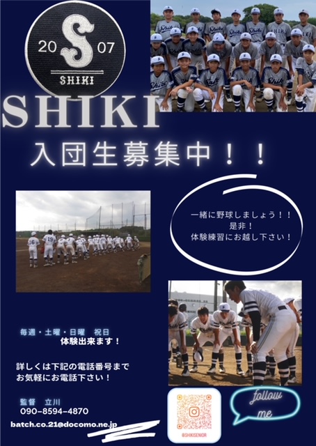 チーム情報はInstagramで更新中です。「志木リトルシニア」で検索してください。