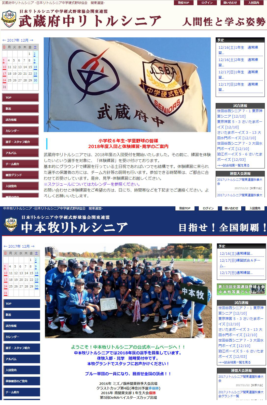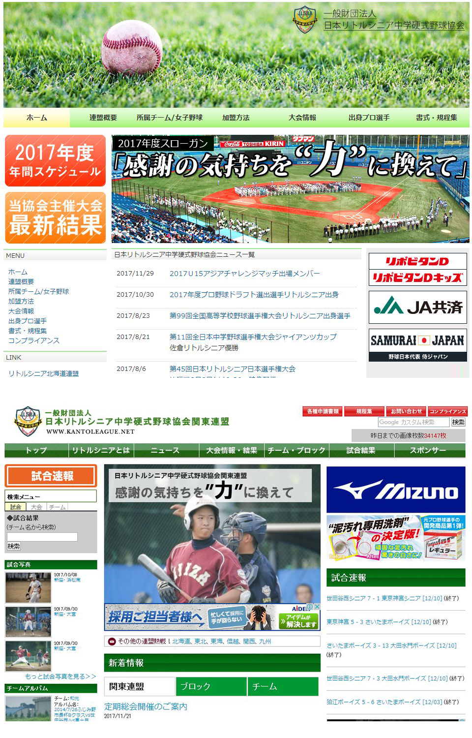 日本リトルシニア中学硬式野球協会さらに全国7連盟 合計8つのHPを運営・管理しています。